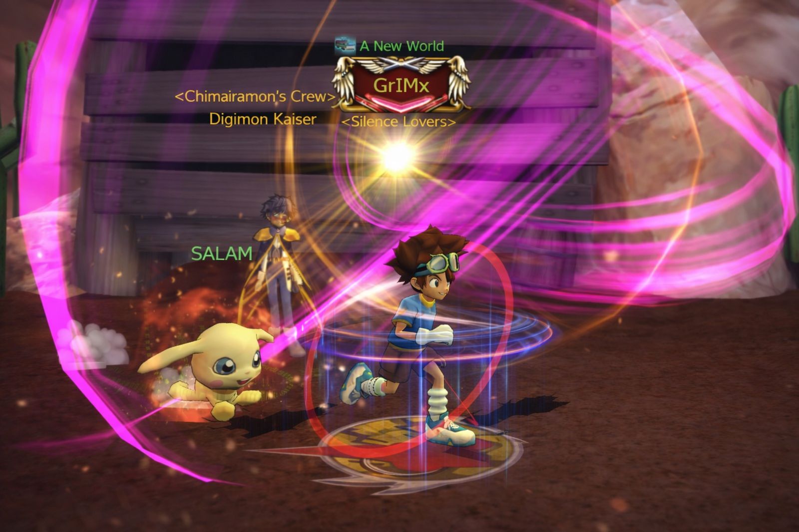 Tamer name: GrIMx Server:Alphamon I was just taking my little Salamon for a peaceful walk in the Digital World when suddenly, the Digimon Kaiser appeared with his Dark Rings! 😱 My Salamon is so brave, she tried to bark at him to protect me, but I grabbed her and started running for our lives! Digimon Kaiser, you can t have my partner today! 🐾💨🏃♂️